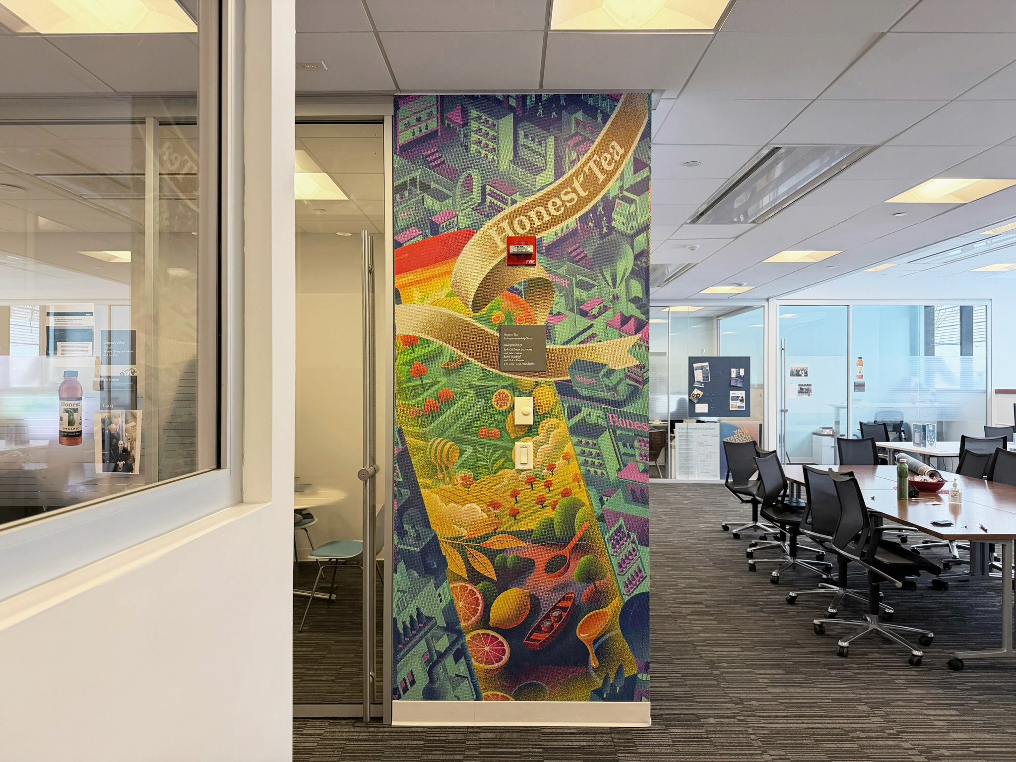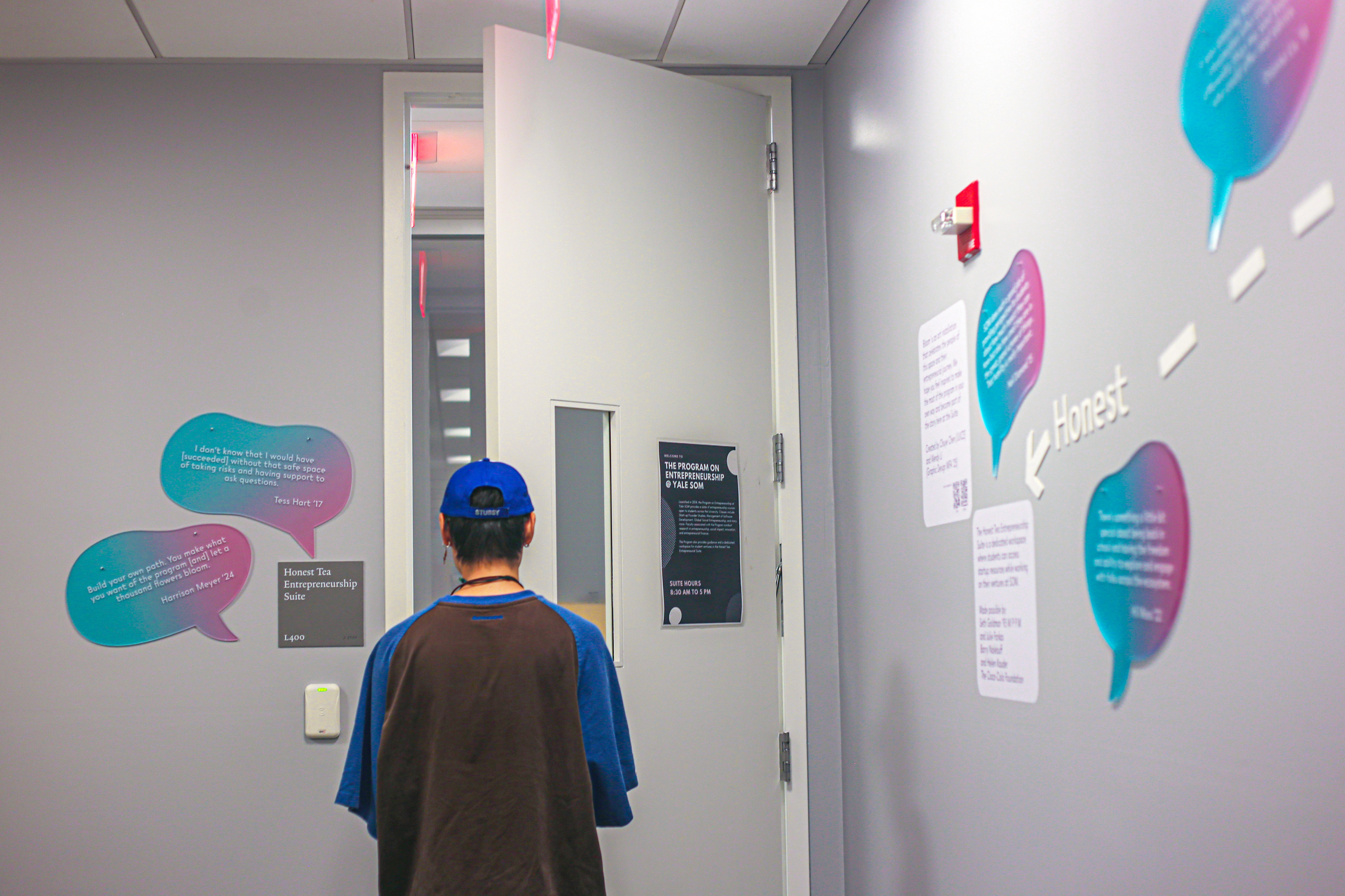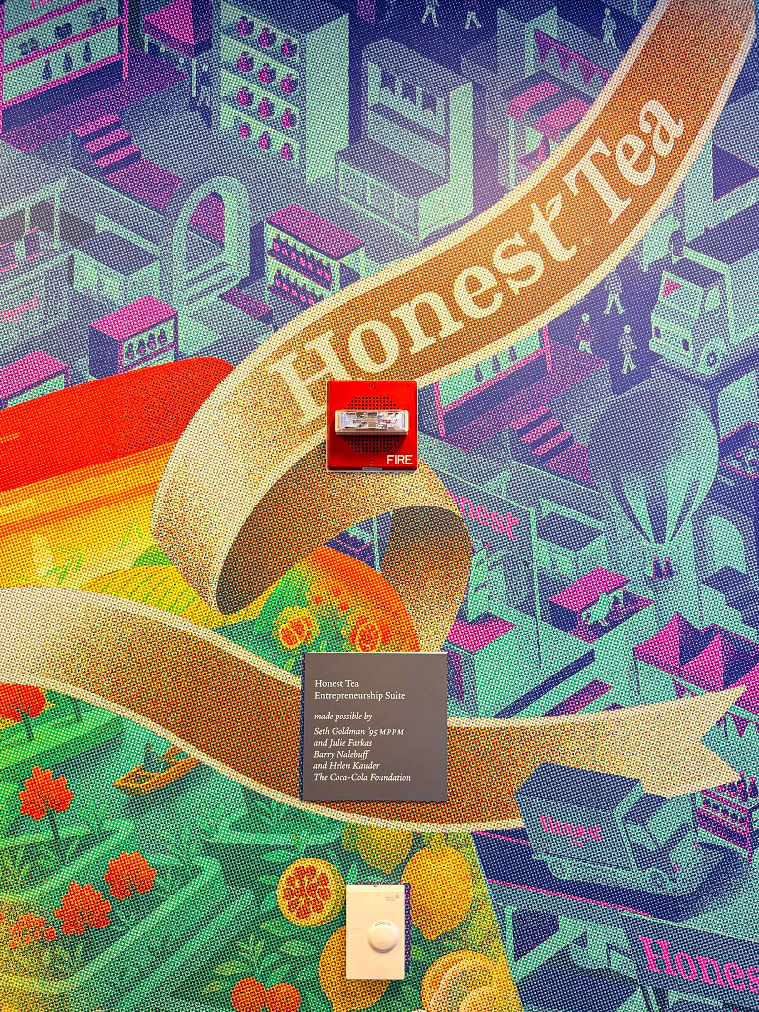 The installation transformed a forgettable hallway into one of the most recognizable spaces in Yale SOM. Incoming students noted it immediately as a signal that this is a space where creativity and exploration belong inside a serious academic building. The system was designed to be expandable — a second phase using the same visual language was installed to celebrate the legacy of Honest Tea and its founder. The Suite now has a visual identity, a narrative, and a statement piece that draws people in.